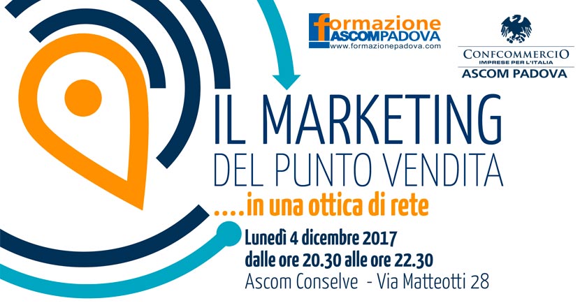 Si terrà lunedì 4 dicembre a partire dalle 20,30 presso l’Ascom di Conselve in via Matteotti 28 il seminario gratuito rivolto ad approfondire le tematiche collegate al marketing per il punto vendita in un ottica di rete.