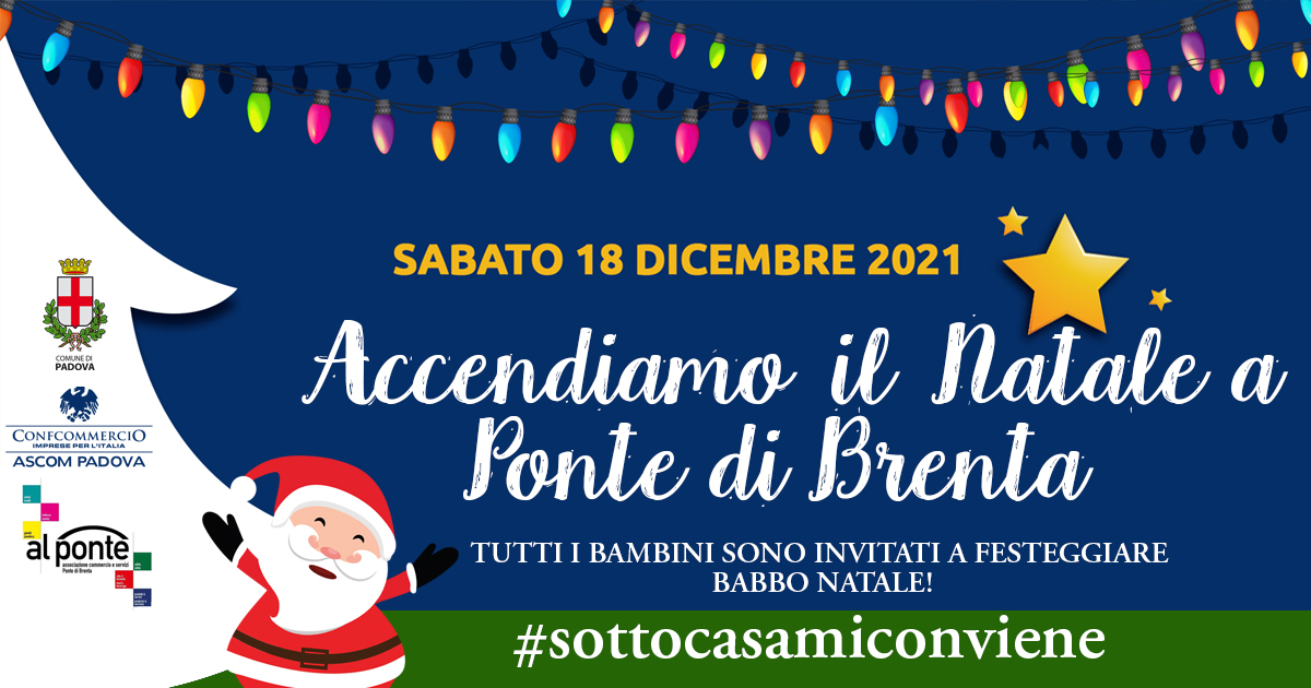 Sabato 18 novembre 2021 sarà a Ponte di Brenta un’intera giornata dedicata al Natale e ai più piccoli. Numerose saranno le iniziative messe in campo, grazie al Comune di Padova e la Confcommercio Ascom Padova, con il contributo dell’Assessorato alle attività produttive e commercio.