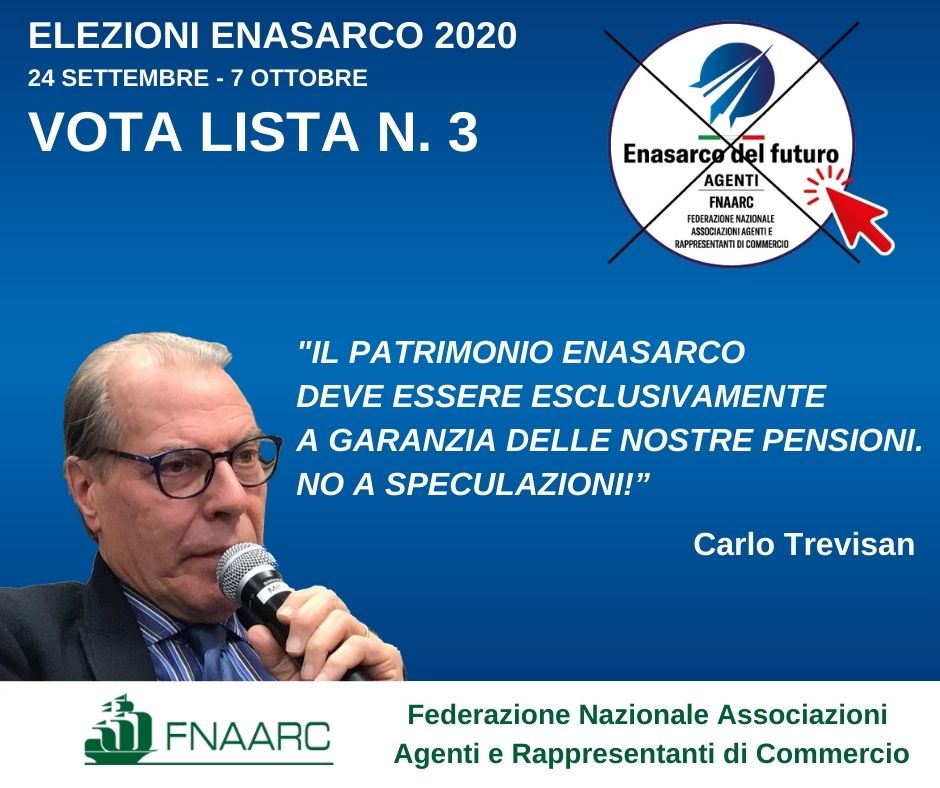 TREVISAN (FNAARC ASCOM CONFOMMERCIO): “UN VOTO ALLA LISTA “ENASARCO DEL FUTURO” PER NON DISPERDERE UN PATRIMONIO DI 8 MILIARDI DI EURO E COSTRINGERE LA MINISTRA CATALFO A DARCI L’ANTICIPO DEL FIRR”