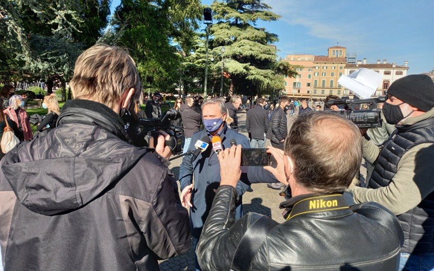 C’era anche il presidente regionale della Confcommercio, Patrizio Bertin, alla manifestazione organizzata dalla Fipe, la Federazione dei Pubblici Esercizi di Confcommercio, in piazza Bra a Verona.
