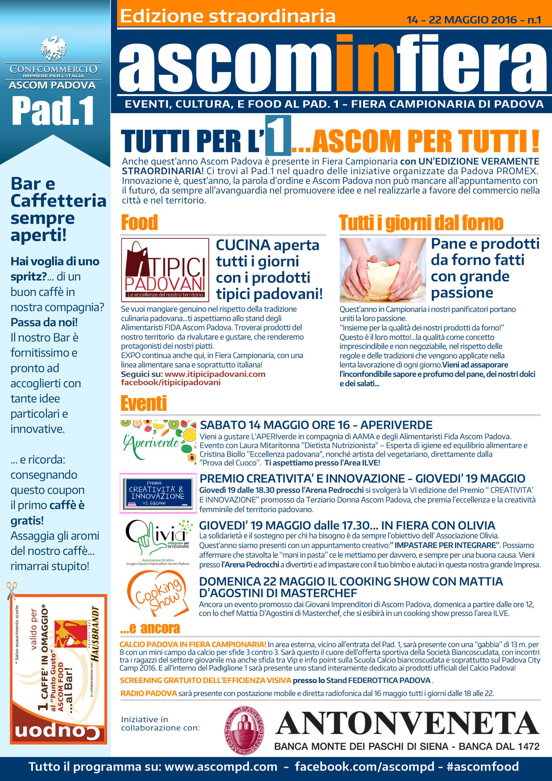 L’Ascom di Padova sarà presente nell’edizione 2016 della Fiera Campionaria al Padiglione 1, dal 14 al 22 maggio, con tutta la serie di eventi e manifestazioni che da ormai molti anni caratterizzano il variegato mondo dell’associazione e di tutte le sue componenti.