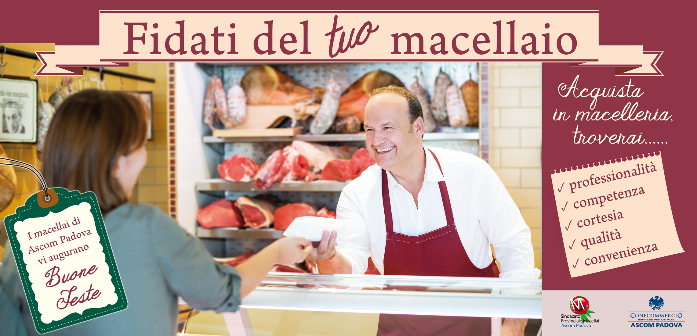 Archiviata senza danni, anche per la “saggezza” dei consumatori, la questione “carni rosse”, torna anche per questo Natale la campagna pubblicitaria “Fidati del tuo macellaio”, promossa dai Macellai aderenti ad Ascom Padova, inaugurata con successo nel 2014, e nata proprio per incentivare l’acquisto della carne di qualità garantita dalla professionalità e dall’esperienza delle botteghe di macelleria, in grado di offrire ai clienti quel quid in più costituito dal rapporto umano, dalla competenza, dalla sicurezza sotto il profilo sanitario, che fanno di queste attività un vero e proprio presidio della tradizione gastronomica