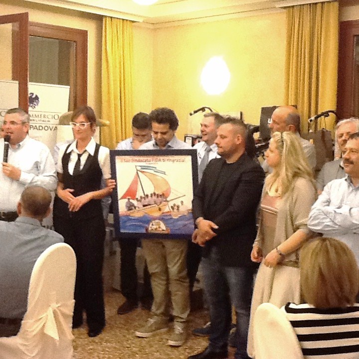 Dopo aver degustato il delizioso menu predisposto da Elena Cristofanon, un premio a sorpresa è toccato anche a Michele Ghiraldo, presidente Fida, da tutto lo staff Fida, che ha voluto immortalarlo in una fotocomposizione in cui compare al timone di una barca a vela assieme a tutti i componenti della squadra degli alimentaristi.