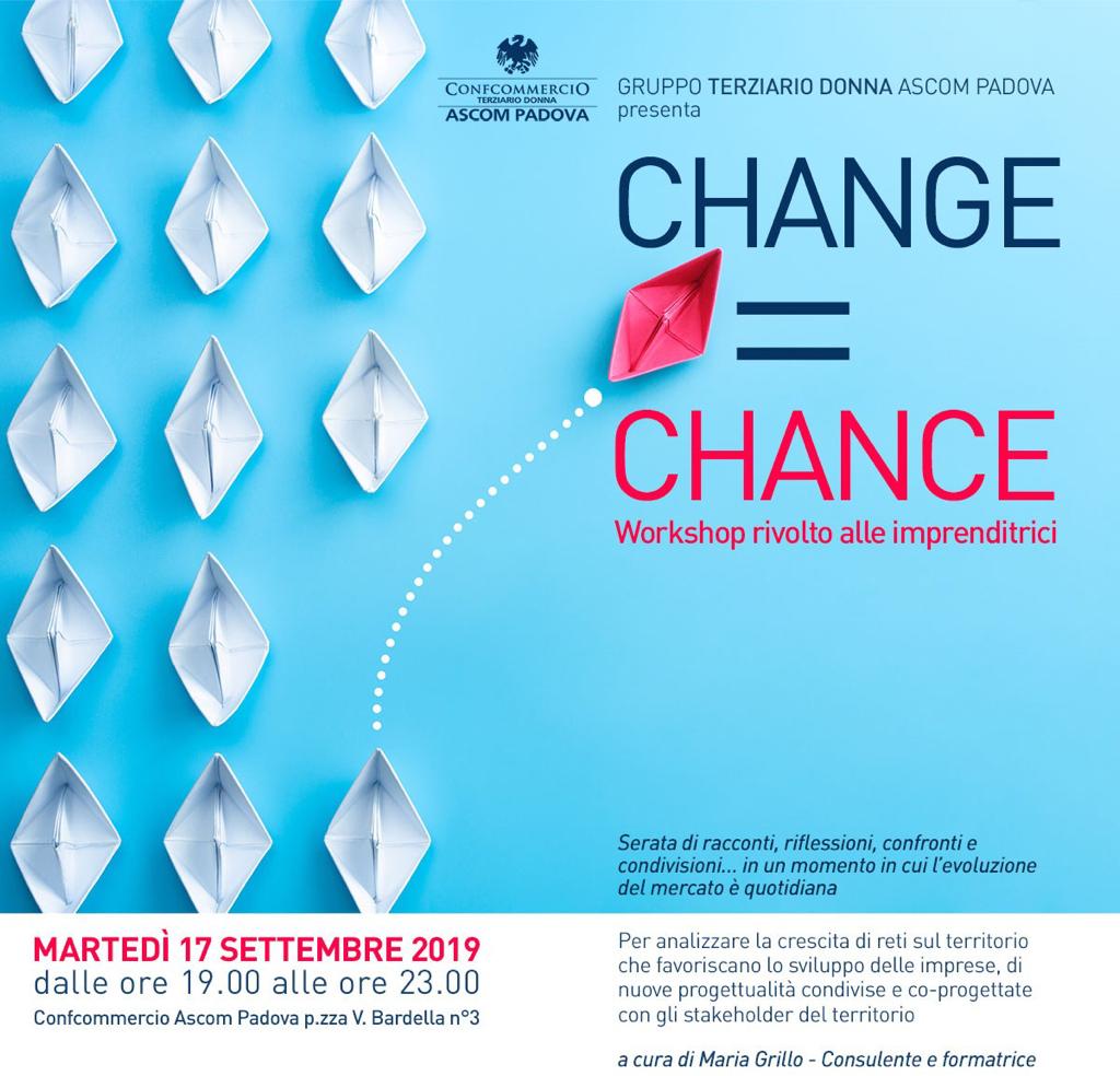 CHANGE = CHANCE   IL 17 SETTEMBRE DALLE 19 ALLE 23 WORKSHOP PER CAPIRE LE SFIDE DI UN MERCATO IN EVOLUZIONE