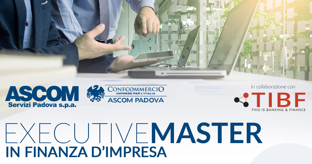 Executive master in finanza di impresa è un format rivolto a tutti coloro che vogliano sviluppare e integrare conoscenze e competenze di finanza di impresa in ottica manageriale proposto da Confcommercio Ascom Padova in collaborazione con TIBF (società operativa in tutta Italia che si occupa di consulenza e strumenti per Banche e Imprese in tutti i comparti merceologici) il cui direttore scientifico è Gianluca Sanchioni, esperto di corporate finance, budgeting e strumenti di pianificazione economico finanziaria.
