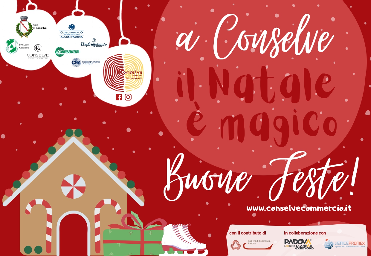 Il Natale è alle porte e la città di Conselve non si è fatta trovare impreparata! Moltissimi sono infatti gli eventi in programma, promossi dalla Città di Conselve, con il Distretto del Commercio di Conselve, la Pro Loco Conselve e Conselve Vigneti e Cantina, in collaborazione con le associazioni di categoria Confcommercio Ascom Padova, Confartigianato Imprese, Confesercenti e Confederazione Nazionale dell’Artigianato e della Piccola e Media Impresa.