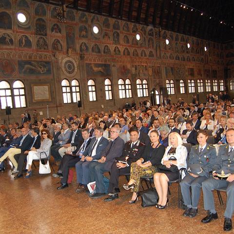 E mentre le associate del gruppo Assonidi facevano giocare con i colori e le sabbie colorate qualcosa come 200 bambini, ben 427 erano i soci che hanno affollato, letteralmente, il Palazzo della Ragione per seguire convegno e premiazioni delle 8 aziende iscritte all’Ascom fin dal 1945.