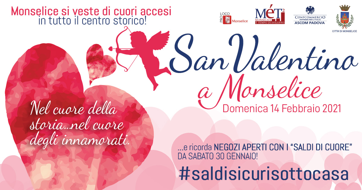 Così, domenica 14 febbraio, grazie all’iniziativa messa in campo dal Mét, il distretto del commercio, dal Comune, dalla Pro Loco e dall’Ascom Confcommercio, “San Valentino a Monselice” sarà l’occasione per vedere la città che si veste di cuori accesi in tutto il centro storico.
