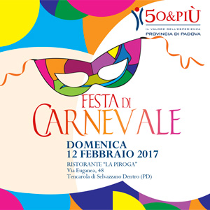 Domenica 12 febbraio al Ristorante “La Piroga” di Selvazzano Dentro (Pd) il Gruppo 50&PIU’ di Ascom Padova organizza la Festa di Carnevale aperta a tutti gli aderenti e i loro familiari e amici.