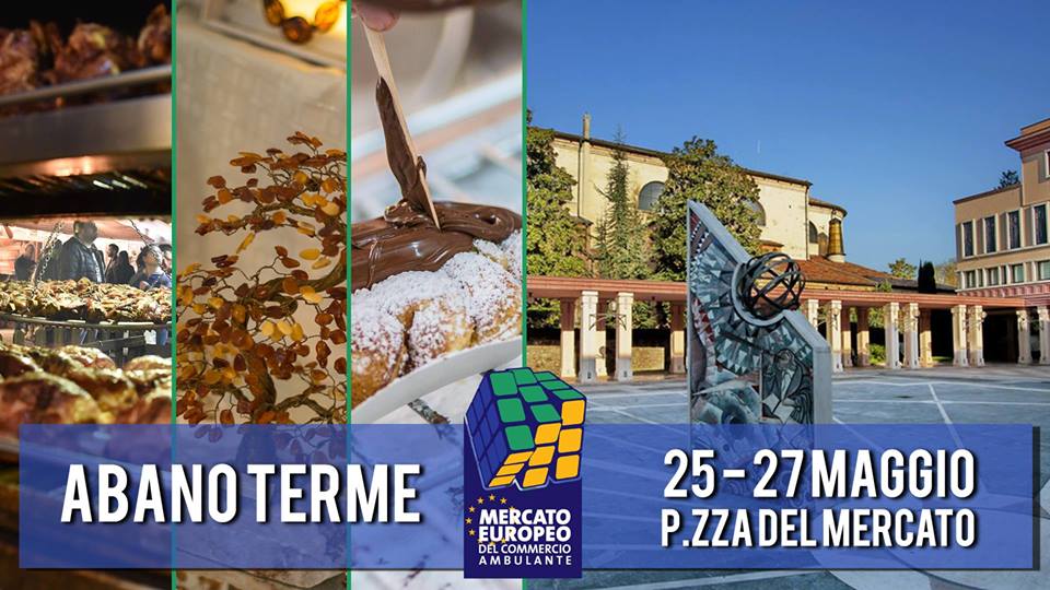 Da venerdì 25 a domenica 27 maggio ad Abano Terme, dalle ore 9 alle ore 24, va in scena per la prima volta “Europa in Piazza”, la manifestazione dedicata ai prodotti enogastronomici e dell’artigianato europeo, che porta in giro per l’Italia il meglio del commercio ambulante europeo e mondiale.