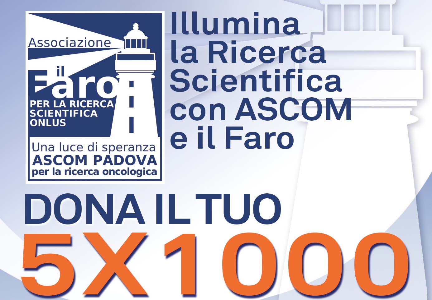 ILLUMINA LA RICERCA SCIENTIFICA CON ASCOM E IL FARO. DONA IL TUO 5X1000 ALLA RICERCA SCIENTIFICA