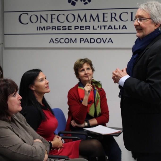 affermato Silvia Dell’Uomo, nel suo saluto di apertura – confermando con questo appuntamento la volontà di promozione che l’Ascom persegue da tempo per le attività culturali nella realtà padovana, come ad esempio il Premio Letterario Sportivo “Memo Geremia Città di Padova”, giunto alla sua quarta edizione e di cui il prof. Pisani è membro di Giuria”.