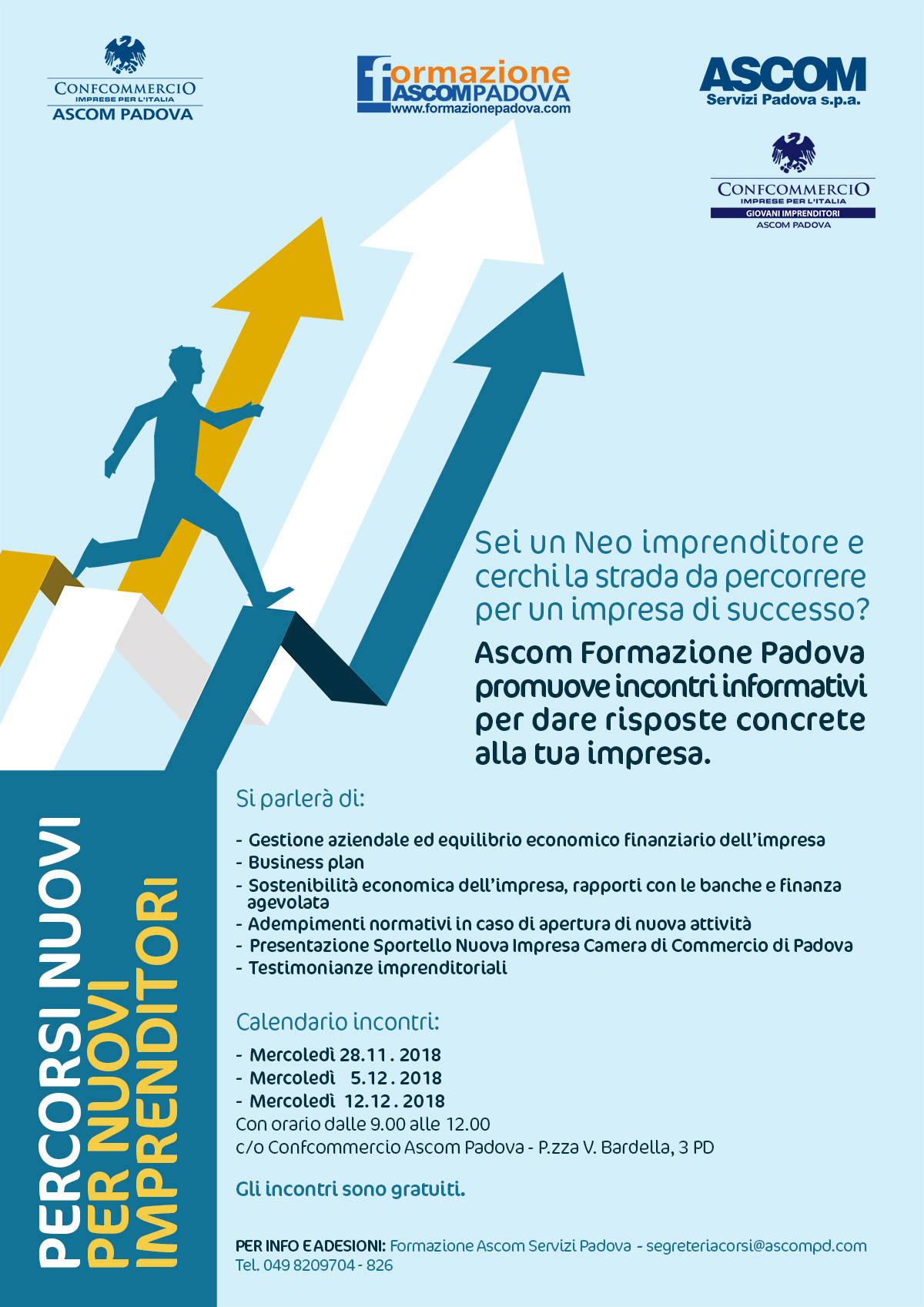 Gli incontri  si svolgeranno il 28 novembre, il 5 e 12 dicembre dalle ore 9.00 alle ore 12.00 nella sede  Ascom di P.zza V. Bardella, 3 a Padova.