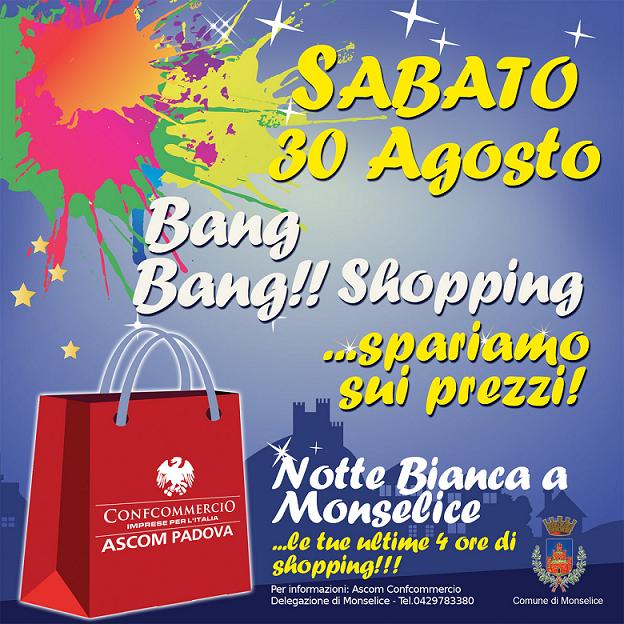 Sabato 30 agosto 2014, dalle 21 alle 2 di notte, le piazze e le vie del centro di Monselice saranno animate dalla musica e dalle occasioni di divertimento e intrattenimento dedicate alla fase finale delle manifestazioni che hanno coinvolto negozi cittadini e turisti nel corso dell’estate monselicense.