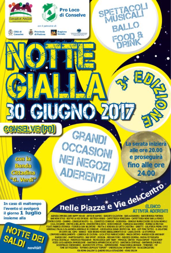 Il 30 giugno la notte di Conselve si tinge di giallo