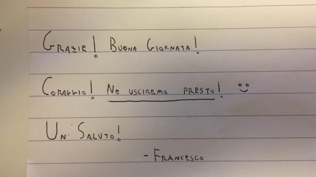 LA SPERANZA DI FINIRE PRESTO L’EMERGENZA IN UN BIGLIETTINO LASCIATO IN HOTEL