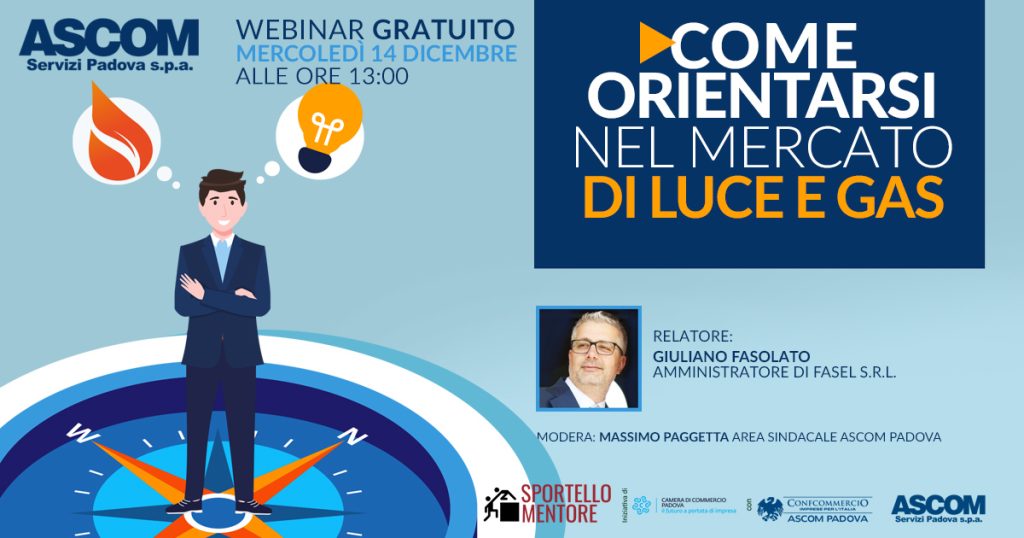 “COME ORIENTARSI NEL MERCATO DI LUCE E GAS” NEL WEBINAR ORGANIZZATO DA ASCOM SERVIZI PADOVA