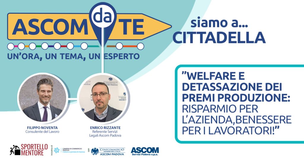 OGGI 25 OTTOBRE “ASCOM DA TE” A CITTADELLA PER PARLARE DI WELFARE E DETASSAZIONE DEI PREMI DI PRODUZIONE