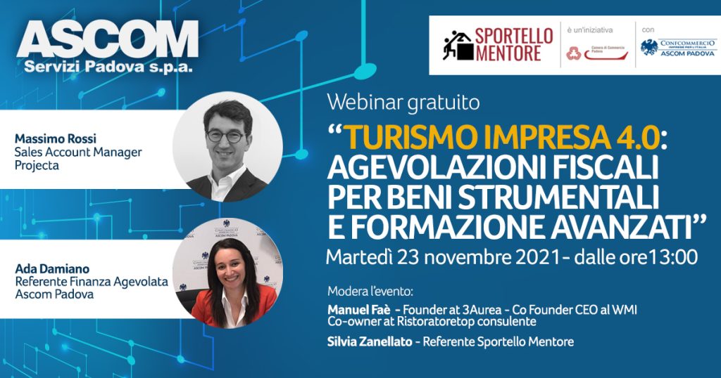 “TURISMO 4.0: AGEVOLAZIONI FISCALI PER BENI STRUMENTALI E FORMAZIONE AVANZATI” WEBINAR IL 23 NOVEMBRE