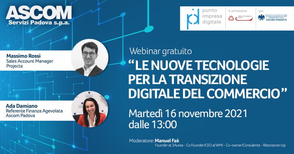 “LE NUOVE TECNOLOGIE PER LA TRANSIZIONE DIGITALE DEL COMMERCIO” WEBINAR IL 16 NOVEMBRE