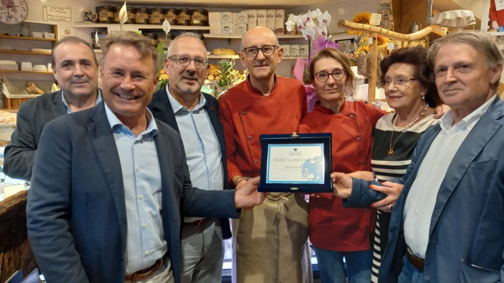 CONSEGNATA DALL’ASCOM CONFCOMMERCIO ALL’ALIMENTARI & ENOTECA MARSIGLIO DI VIA MATTEOTTI AD ABANO TERME LA TARGA PER LA PROFESSIONALITA’ E LA FEDELTA’ ASSOCIATIVA