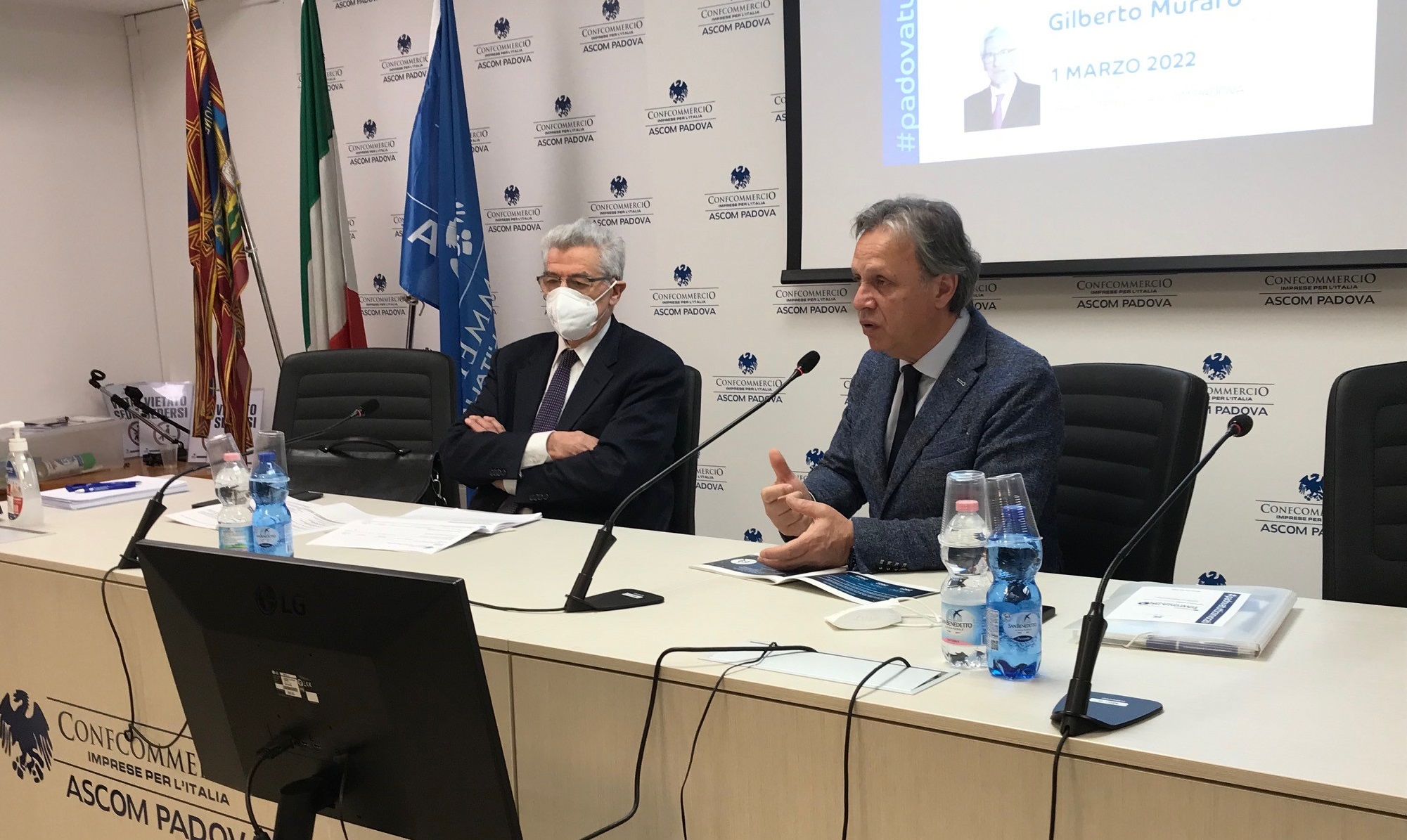 Ha esordito riconoscendo al comparto del terziario di mercato di non aver ceduto durante la pandemia: “Qui mi trovo nel “tempio del coraggio”, ha detto Gilberto Muraro, presidente della Fondazione Cassa di Risparmio di Padova e Rovigo e secondo ospite nel quadro di “Padova Tutti Convocati 3”, ovvero la terza edizione dell’iniziativa dell’Ascom Confcommercio pensata, nel 2019, per cercare di prefigurare la Padova degli anni a venire, dove per Padova si intende la città ma anche la provincia e che prevede, anche per questa tornata, tutta una serie di “audizioni” agli stakeholder istituzionali padovani sul tema specifico dell’utilizzo dei fondi del Piano Nazionale di Ripresa e Resilienza (“Obiettivo PNRR: qualità non quantità”).