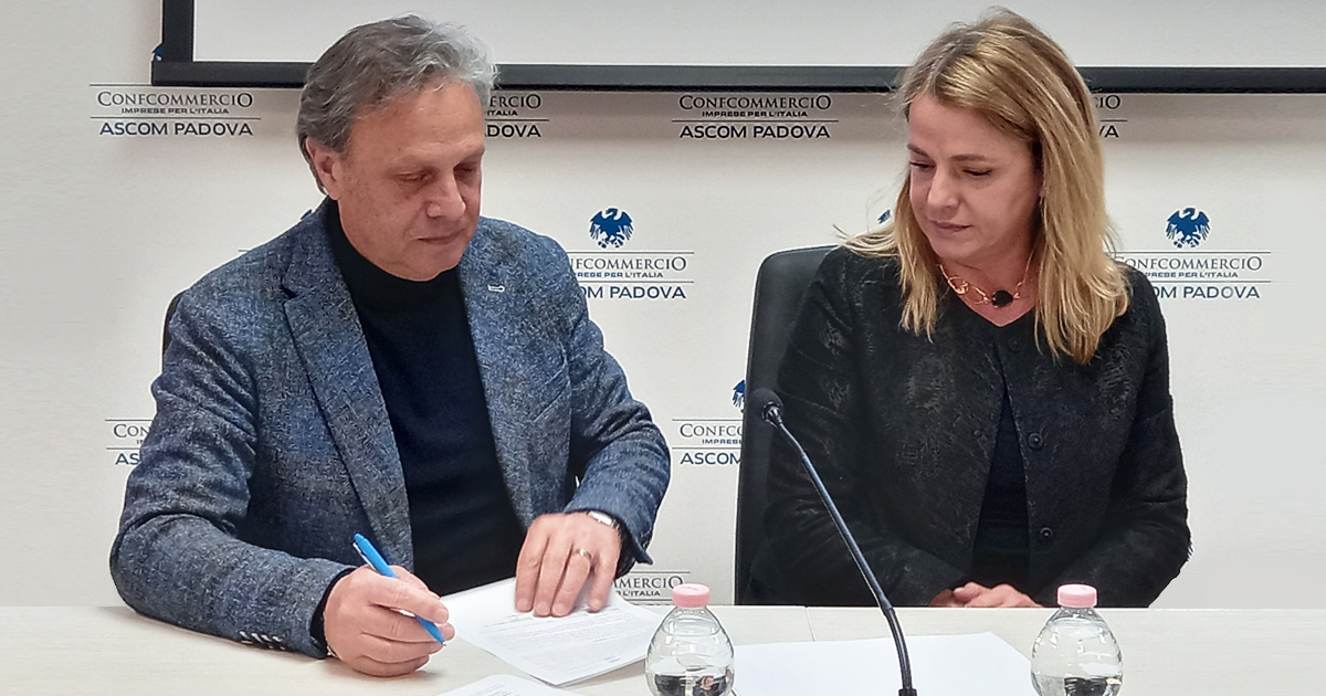 A firmare l’accordo (11 pagine fitte di interventi e sostegni per il mondo del terziario di mercato) di fronte ad una sala gremita di funzionari della banca e dell’associazione, la responsabile della direzione regionale Veneto Ovest e Trentino Alto Adige, Cristina Balbo ed il presidente di Confcommercio Ascom Padova e di Confcommercio Veneto, Patrizio Bertin.