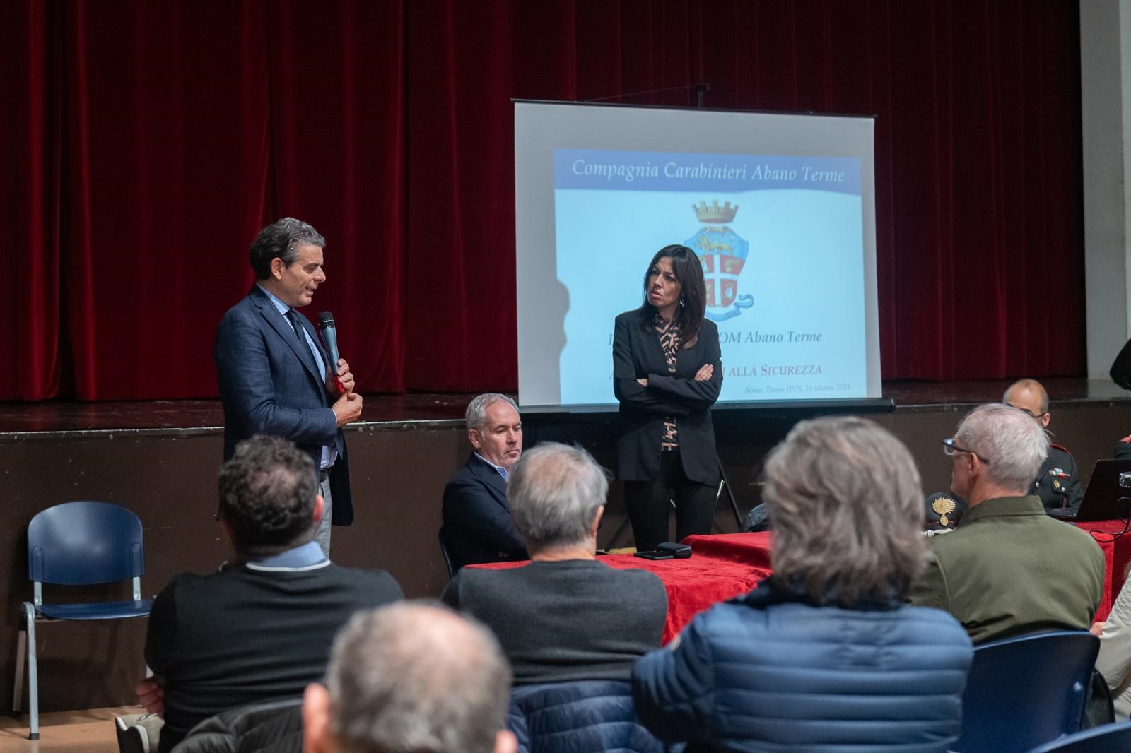 Può essere sintetizzato in questa maniera il convegno, svoltosi al CRC (il Circolo Ricreativo Comunale) di Abano Terme sul tema “Tutela e sicurezza di esercenti e commercianti del territorio” organizzato dalla locale sezione dell’Ascom Confcommercio in collaborazione col Comune aponense e che ha visto la partecipazione dell’Arma dei Carabinieri, nello specifico del Maresciallo Vincenzo Mancini, Comandante della stazione di Abano Terme e del Maggiore Carmelo Recupero comandante della Compagnia di Abano Terme.