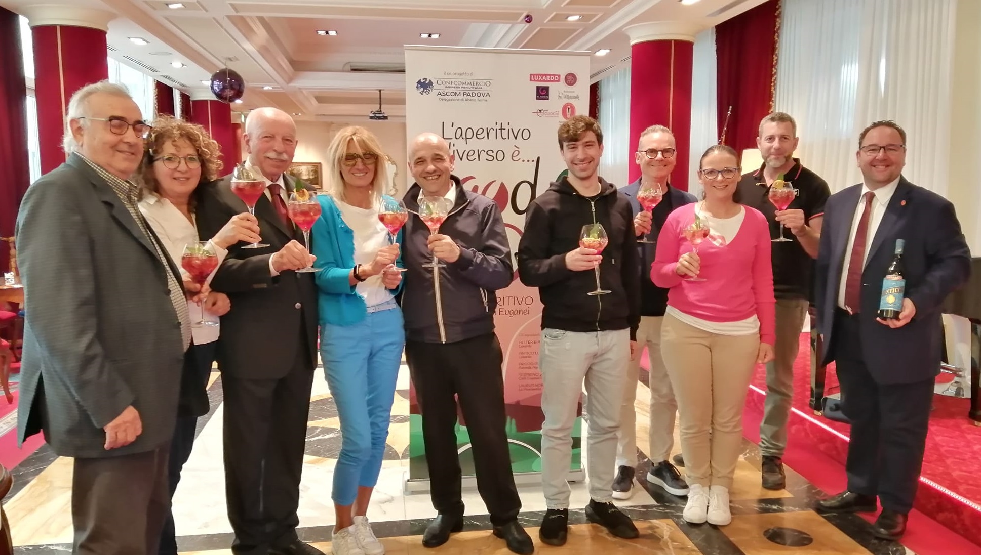 Questo progetto, infatti, nato durante il periodo di pandemia, è stato ideato dalla delegazione Ascom Confcommercio di Abano Terme col sostegno di Venicepromex e Comune di Abano Terme ed ha coinvolto l’Associazione Barman (A.B.I. Professional), i maître locali dell’Associazione Maître (A.M.I.R.A.) e l’Associazione Cuochi Terme Euganee. A sostenere questa iniziativa sono inoltre presenti marchi del territorio, rappresentati da Consorzio Vini Colli Euganei, Luxardo, Scarpon e La Montanella.