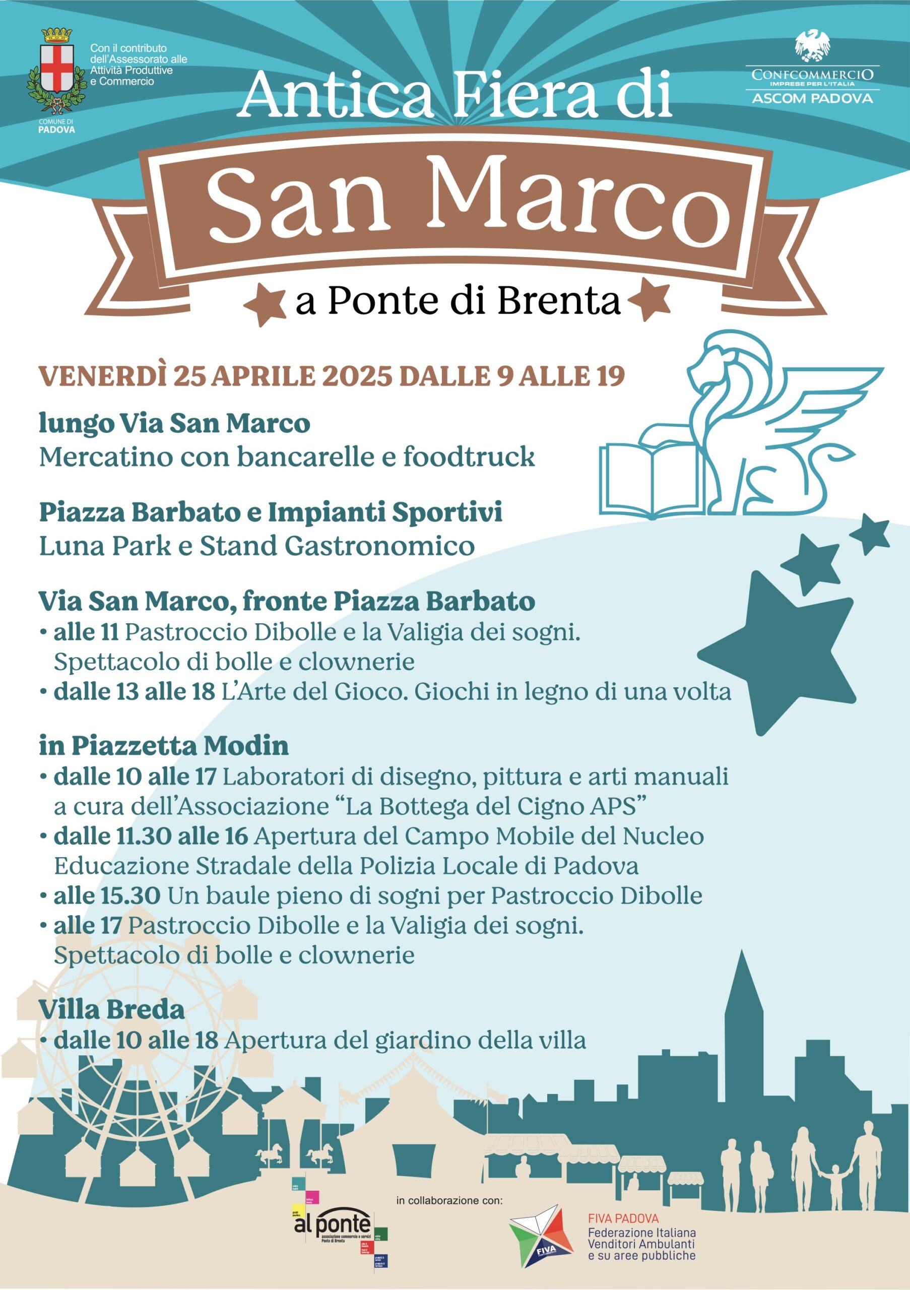 Torna il 25 aprile, a Ponte di Brenta, l’atteso appuntamento con l’Antica Fiera di San Marco, realizzata grazie al contributo dell’Assessorato alle Attività Produttive del Comune di Padova e la collaborazione di Confcommercio Ascom Padova, con l’Associazione Al Ponte e FIVA Confcommercio Padova.