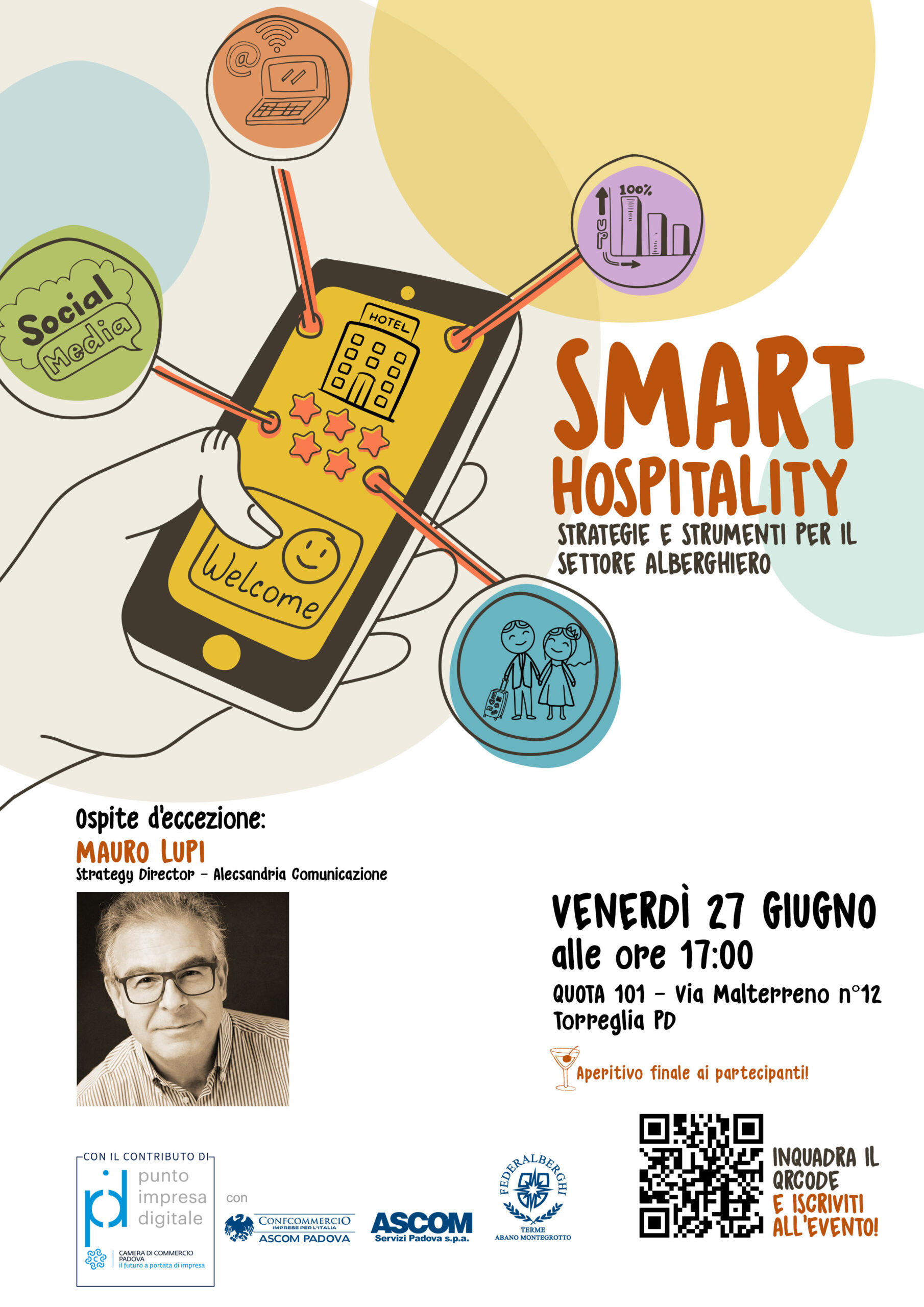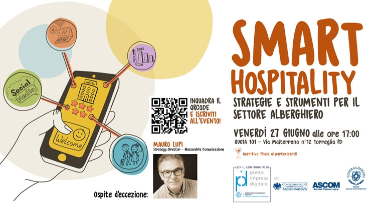 Venerdì 27 giugno, alle 17, al Quota 101 di Torreglia, l’evento “Smart Hospitality – Strategie e strumenti per il settore alberghiero” organizzato da Ascom Servizi Padova