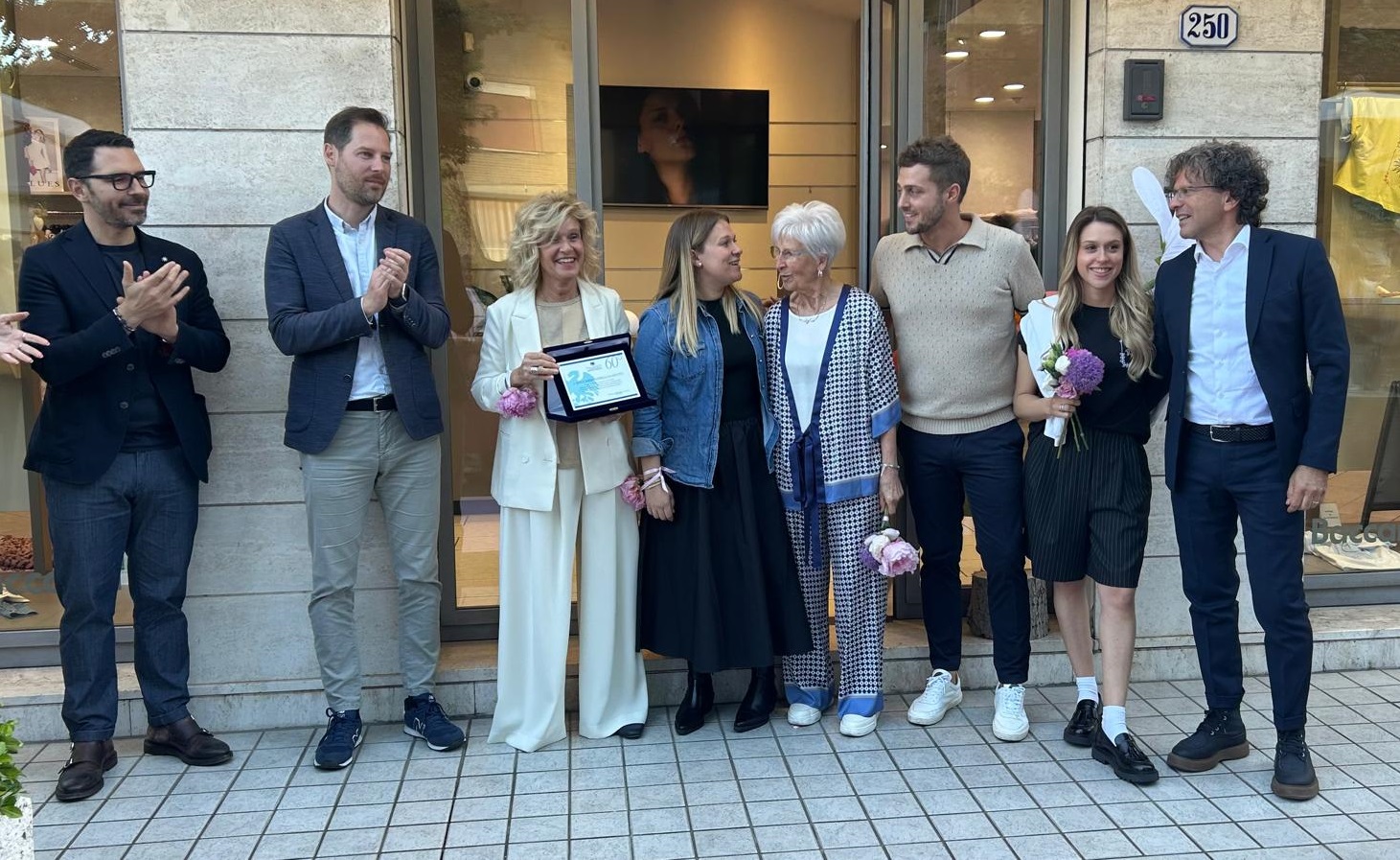 Con la titolare Federica e la figlia Aurora, anche l’assessore al commercio Antonio Bressa ed il presidente di Federmoda Confcommercio Veneto e Ascom Padova, Riccardo Capitanio che ha consegnato una targa per celebrare un’attività che ora punta a diventare negozio storico riconosciuto dalla Regione