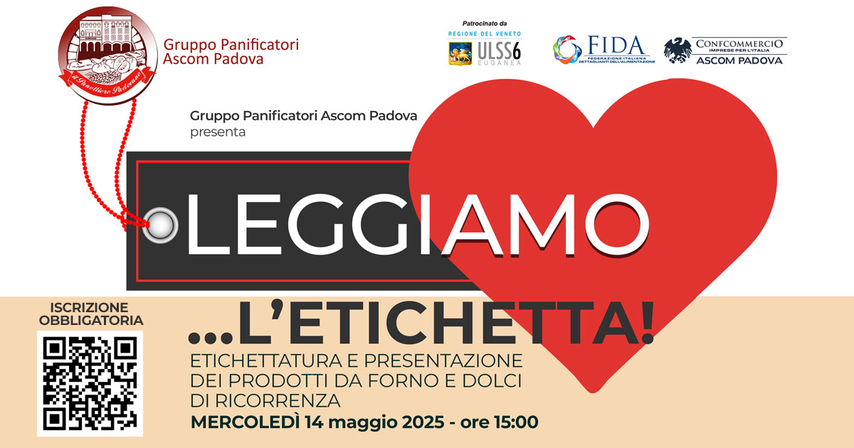 “Leggiamo … l’etichetta!” Mercoledi’ 14 maggio alle 15 il convegno organizzato dal Gruppo Panificatori Ascom Confcommercio Padova con ULSS e NAS