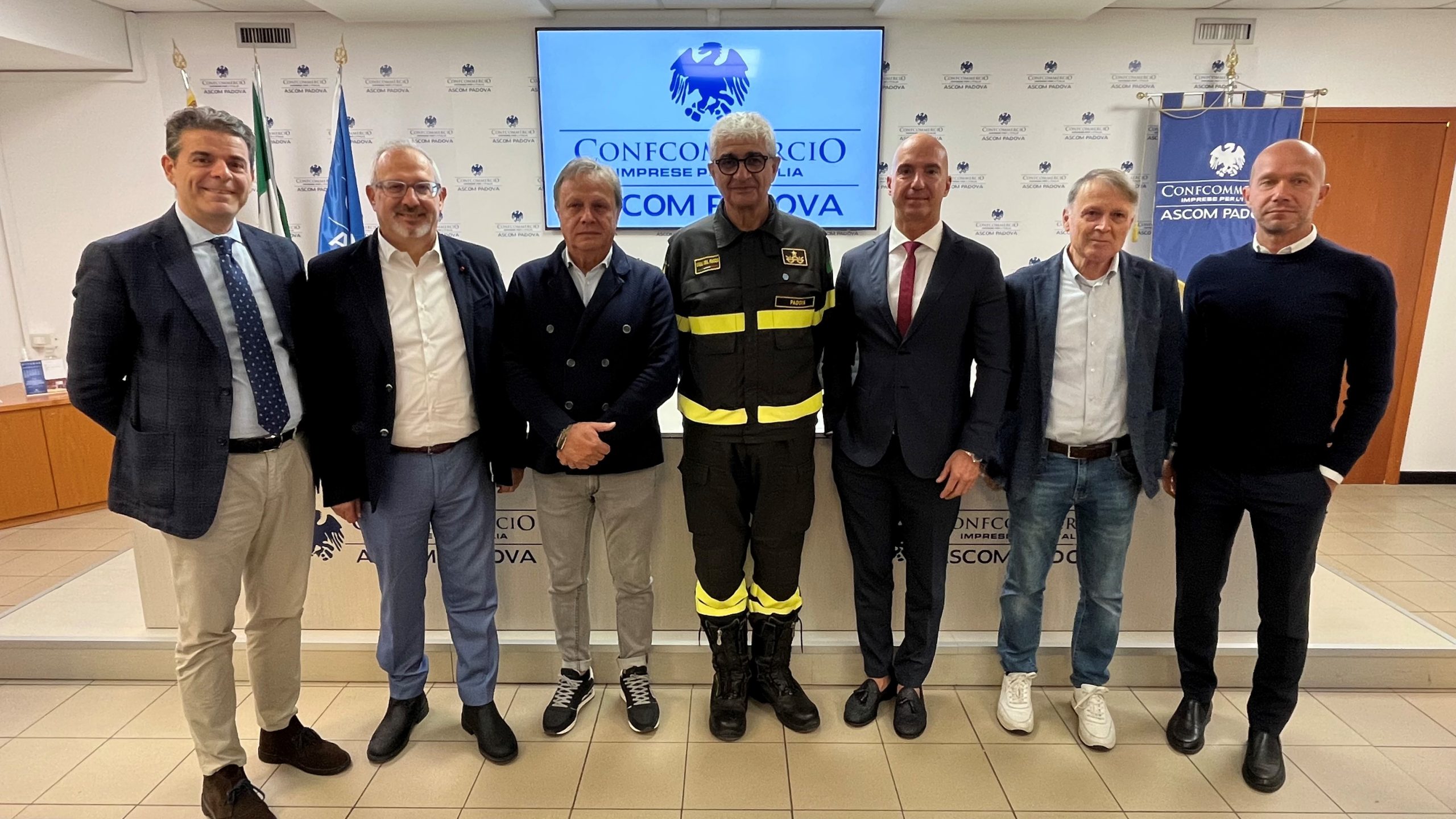 Incontro nella sede dell’Ascom Confcommercio tra i vertici dell’associazione ed il comandante dei Vigili del Fuoco di Padova, il dirigente superiore Giuseppe Lomoro.