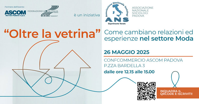 Non a caso il tema del convegno organizzato dall’associazione nazionale Sociologi, che si terrà presso la sede di Confcommercio Ascom Padova lunedì 26 maggio a partire dalle 12:15, vede in apertura il contributo del presidente regionale e provinciale di Federmoda Confcommercio, Riccardo Capitanio, con il compito di tracciare il perimetro entro cui analizzare un fenomeno con ampie ricadute anche nel segmento della vendita.