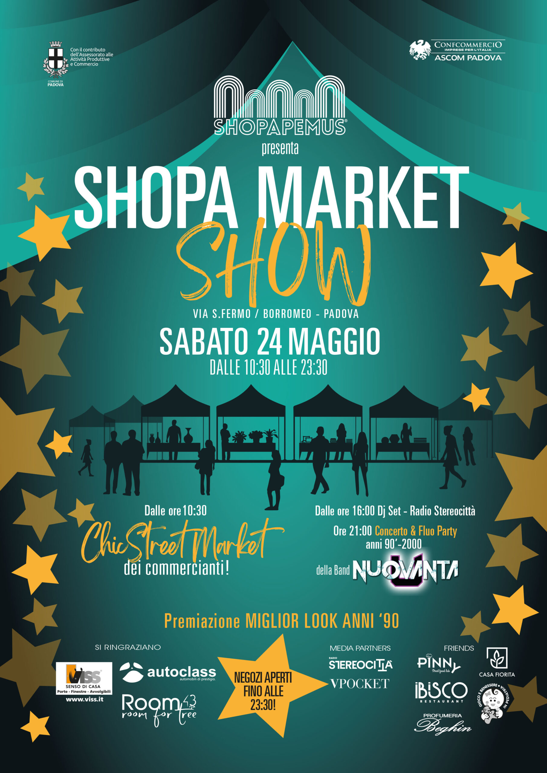 Shopapemus, il gruppo di commercianti del secondo tratto di Via San Fermo- Corner Piscopia Borromeo organizza, per sabato 24 maggio, il sesto evento del gruppo e il primo del 2025: “ShopaMarketShow”, in collaborazione con Comune di Padova Assessorato al Commercio e Ascom di Padova.