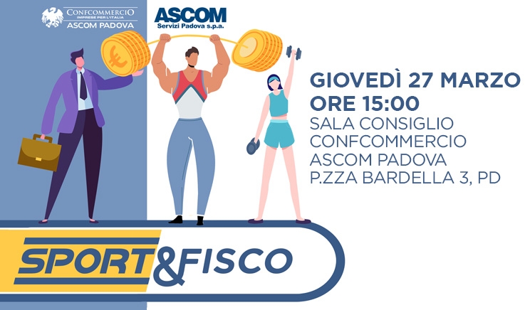 Giovedì 27 marzo dalle 15:00 in programma all’Ascom di Padova (nella sede di Piazza Bardella 3) un importante appuntamento informativo aperto a tutti i titolari, soci e operatori che gravitano a vario titolo nel complesso e variegato mondo delle attività sportive, dalle palestre alle associazioni sportive dilettantistiche, alle piscine e via dicendo, per analizzare due tematiche apparentemente divergenti ma che costituiscono il core business di questo panel di aziende.