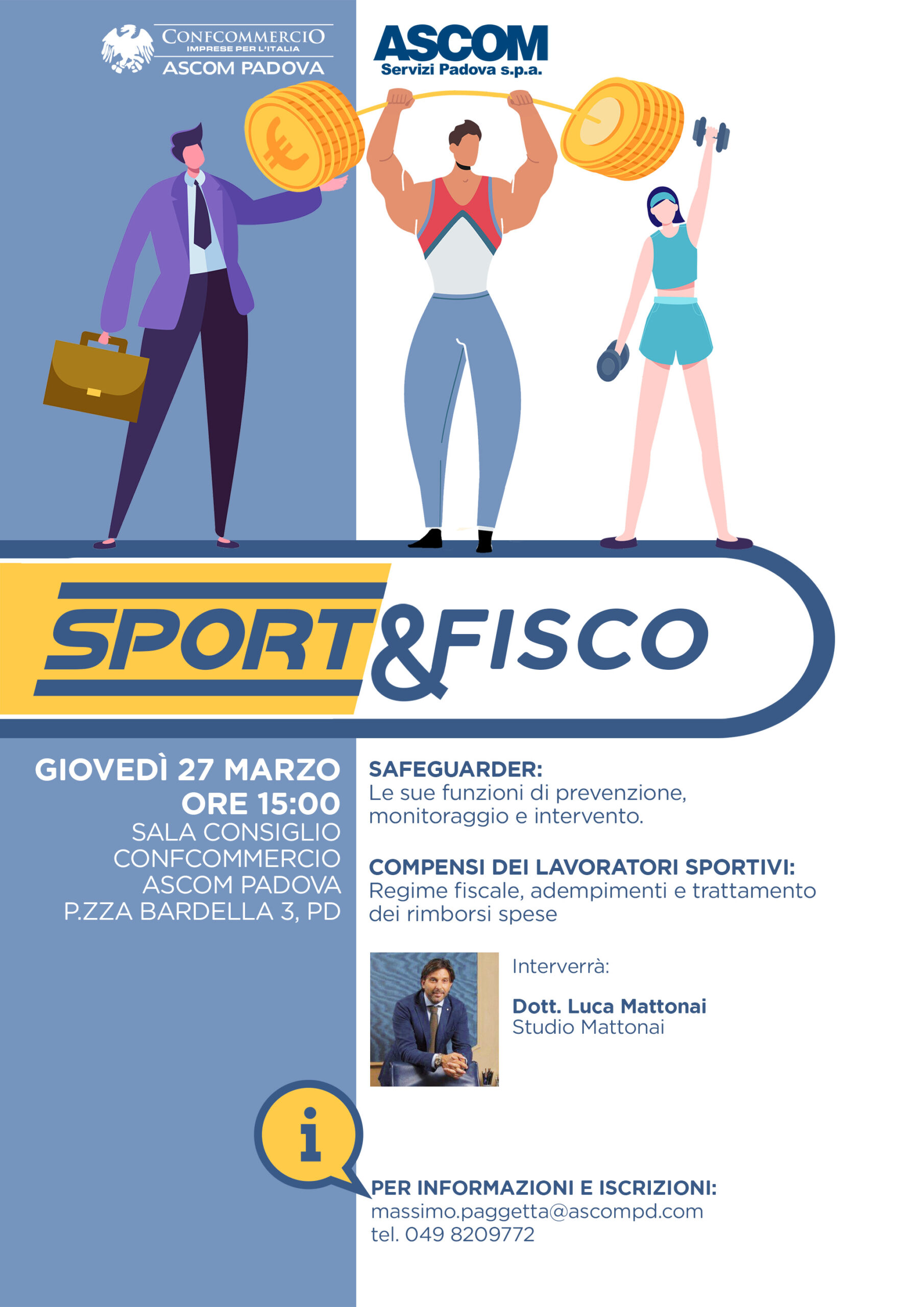 Per iscriversi e per ogni ulteriore informazione contattare Massimo Paggetta, tel. 049 8209772 oppure scrivere a: massimo.paggetta@ascompd.com